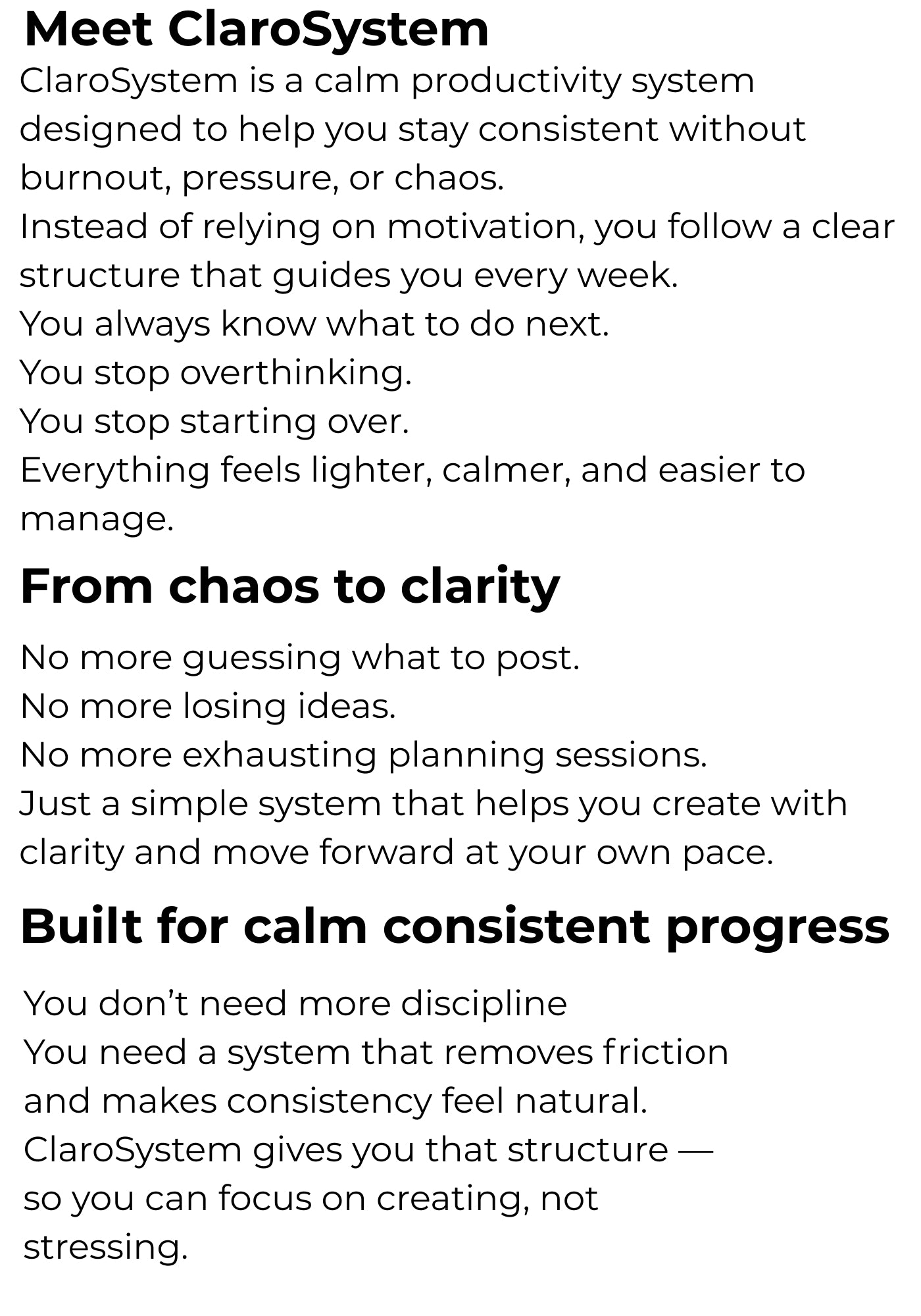 ClaroSystem removes chaos and gives you a clear daily focus, making consistency easier.